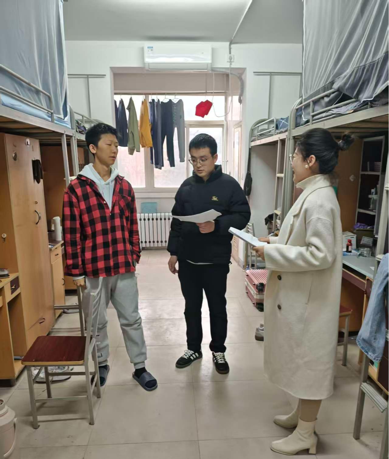 为切实保障寒假期间校园安全稳定,全面筑牢安全防线,1月18日下午,由学院党委副书记张力带队,组织全体辅导员深入学生宿舍,开展留校学生宿舍安全专项检查工作,对风险隐患进行了全面细致的排查,确保学生管理各项工作落实到位。